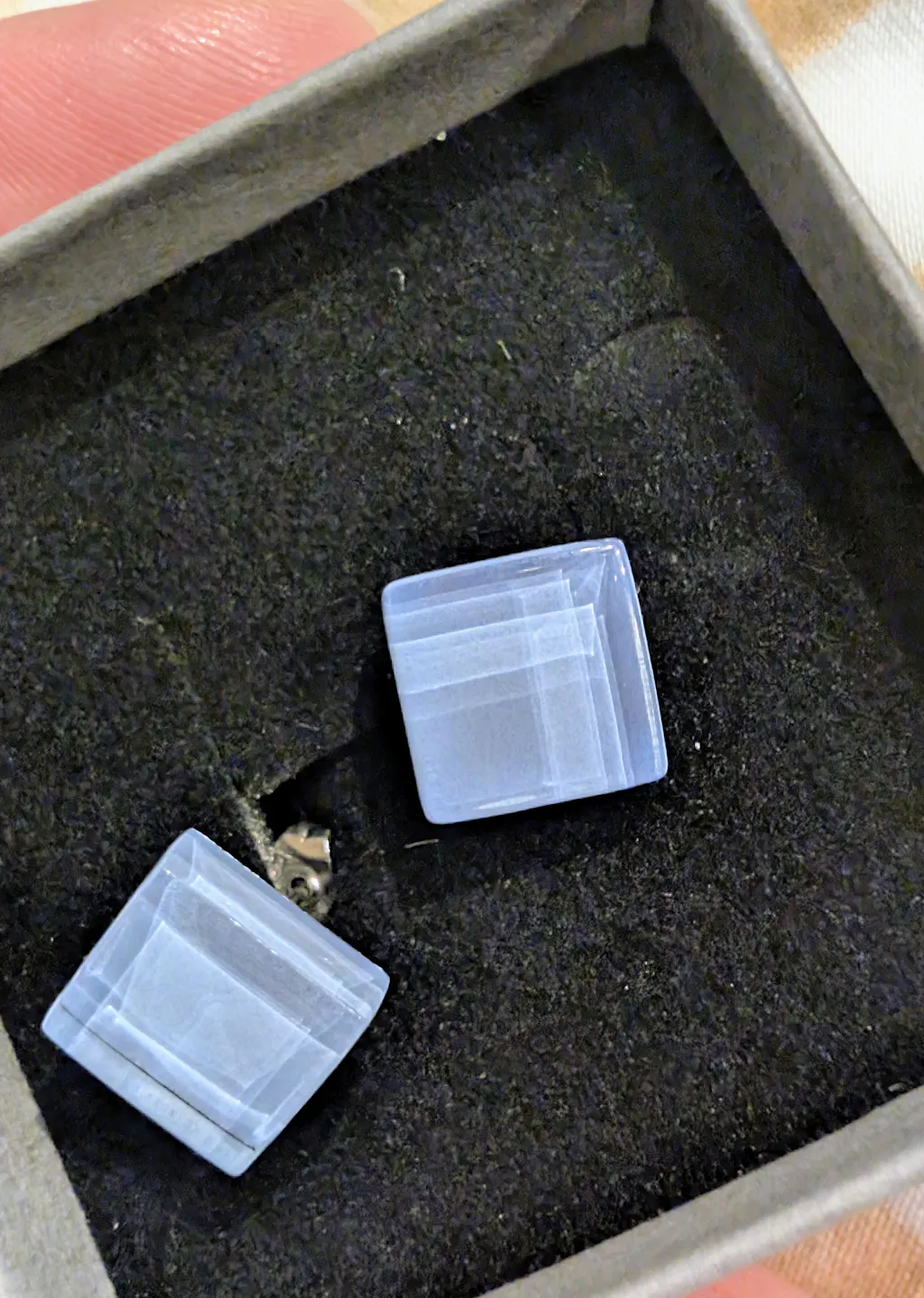 These small glass stud earrings will be your new everyday companion. Their light weight makes them barely noticeable and very comfortable to wear. The earrings feature a mosaic stone that refracts the light on the glass surface, making you shine. The transparent glass is coated with a vibrant color on the underside.