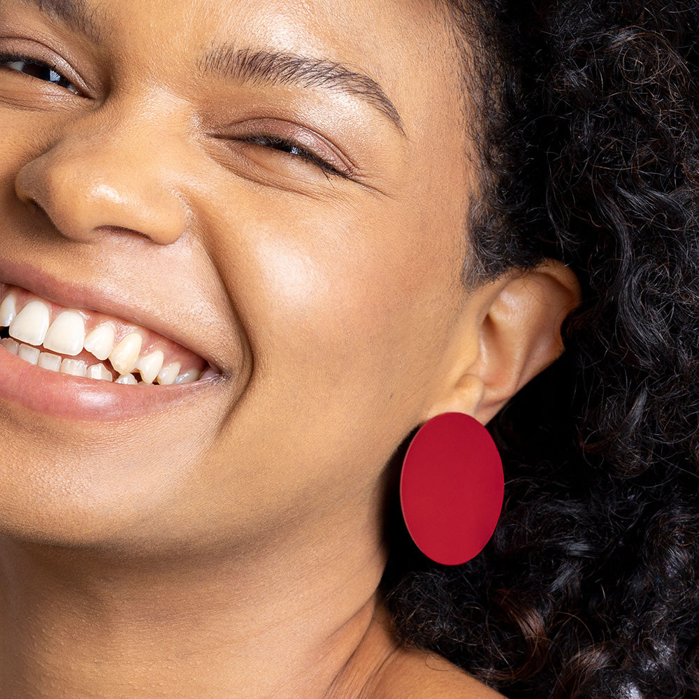 Wir haben uns dem Spiel von Formen und Farben hingegeben und herausgekommen ist ein ausgefallener Ohrring, der Geometrie und Farbe in den Vordergrund stellt. Die klare Form sowie die matte Oberfläche der Ohrringe lassen Dir den Raum, den Du zum Strahlen benötigst!