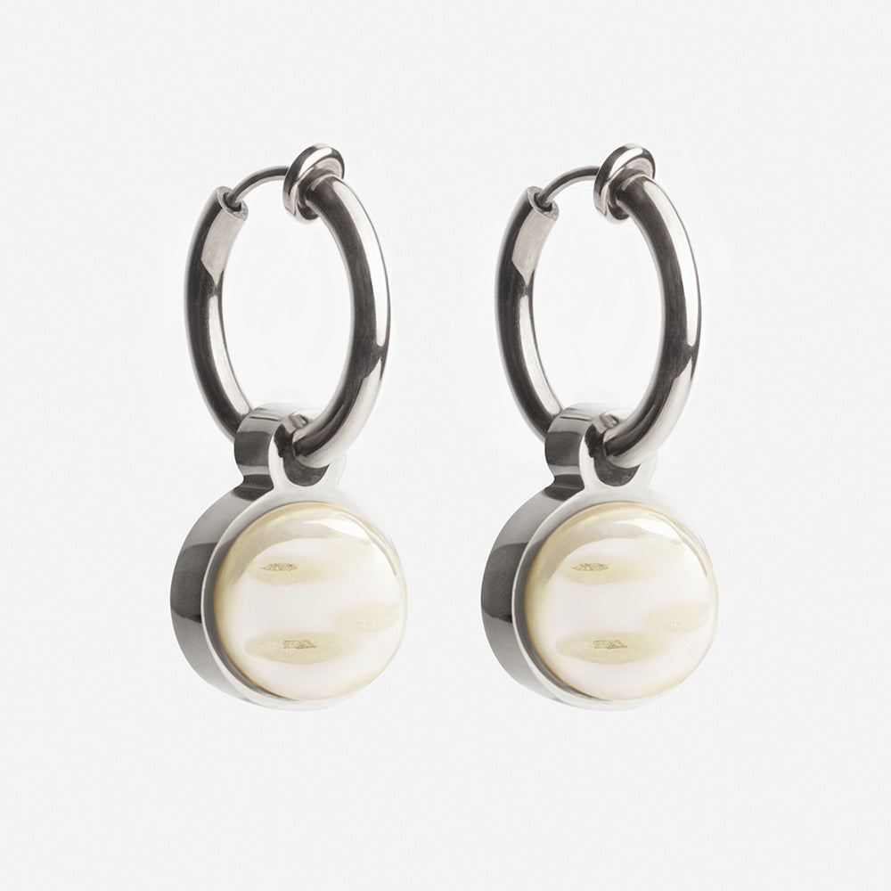 Clip-Ohrringe mit auswechselbarem Anhänger (Perlmutt weiß)