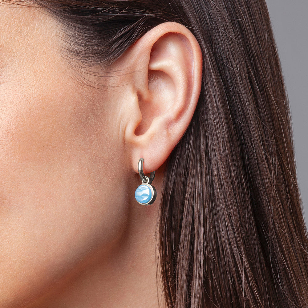 Die Anhänger bestehen aus recyceltem Glas mit einer strahlenden Perlmuttbeschichtung, die den Charme von Halbedelsteinen versprüht, ohne dabei endliche Ressourcen zu verbrauchen. Die Ohrclips sind wasserabweisend und langlebig und werden auf nachhaltige Weise in Europa hergestellt. Ob mit oder ohne Ohrlöcher, mit den Clip Creolen setzt Du ein Statement für Stil und Nachhaltigkeit!