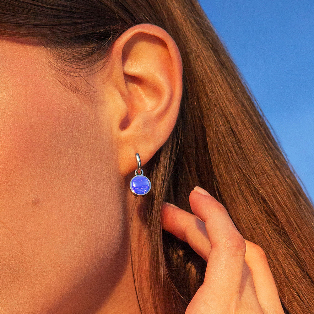 Die Clip Creolen aus hochwertigem Edelstahl sind in drei Metallfarben und 20 Steinfarben erhältlich. Die abnehmbaren Anhänger gleiten geschmeidig über die Clips und verleihen jedem Look eine individuelle Note. Der weiche Federverschluss sorgt für einen bequemen Sitz.