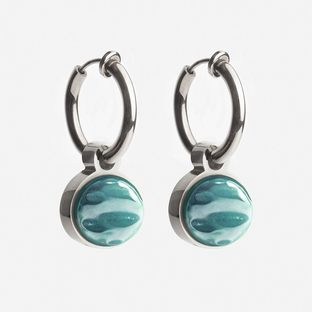 Die Anhänger bestehen aus recyceltem Glas mit einer strahlenden Perlmuttbeschichtung, die den Charme von Halbedelsteinen versprüht, ohne dabei endliche Ressourcen zu verbrauchen. Die Ohrclips sind wasserabweisend und langlebig und werden auf nachhaltige Weise in Europa hergestellt. Ob mit oder ohne Ohrlöcher, mit den Clip Creolen setzt Du ein Statement für Stil und Nachhaltigkeit!