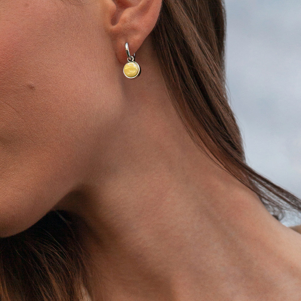 Die Anhänger bestehen aus recyceltem Glas mit einer strahlenden Perlmuttbeschichtung, die den Charme von Halbedelsteinen versprüht, ohne dabei endliche Ressourcen zu verbrauchen. Die Ohrclips sind wasserabweisend und langlebig und werden auf nachhaltige Weise in Europa hergestellt. Ob mit oder ohne Ohrlöcher, mit den Clip Creolen setzt Du ein Statement für Stil und Nachhaltigkeit!