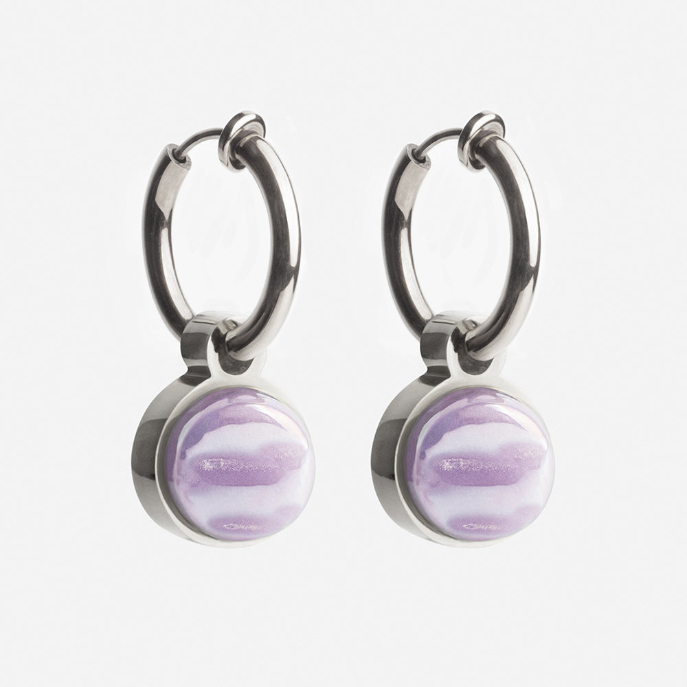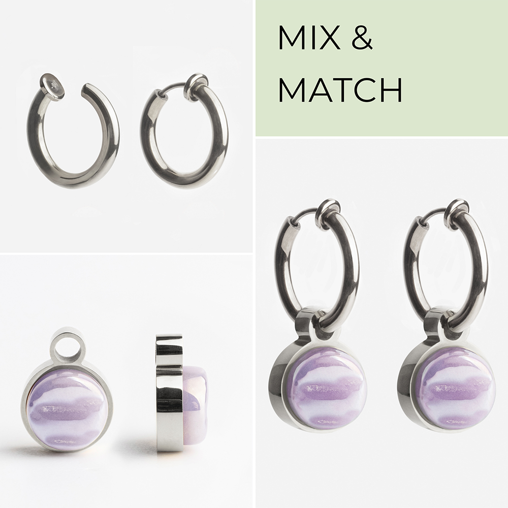 Die Clip Creolen aus hochwertigem Edelstahl sind in drei Metallfarben und 20 Steinfarben erhältlich. Die abnehmbaren Anhänger gleiten geschmeidig über die Clips und verleihen jedem Look eine individuelle Note. Der weiche Federverschluss sorgt für einen bequemen Sitz.