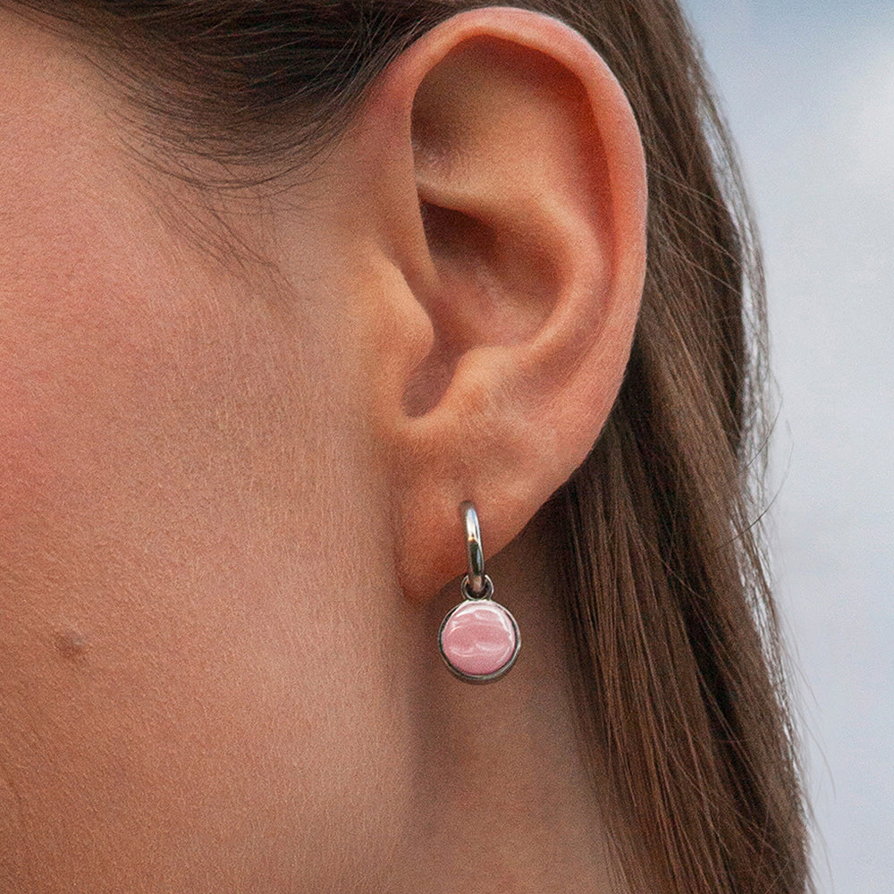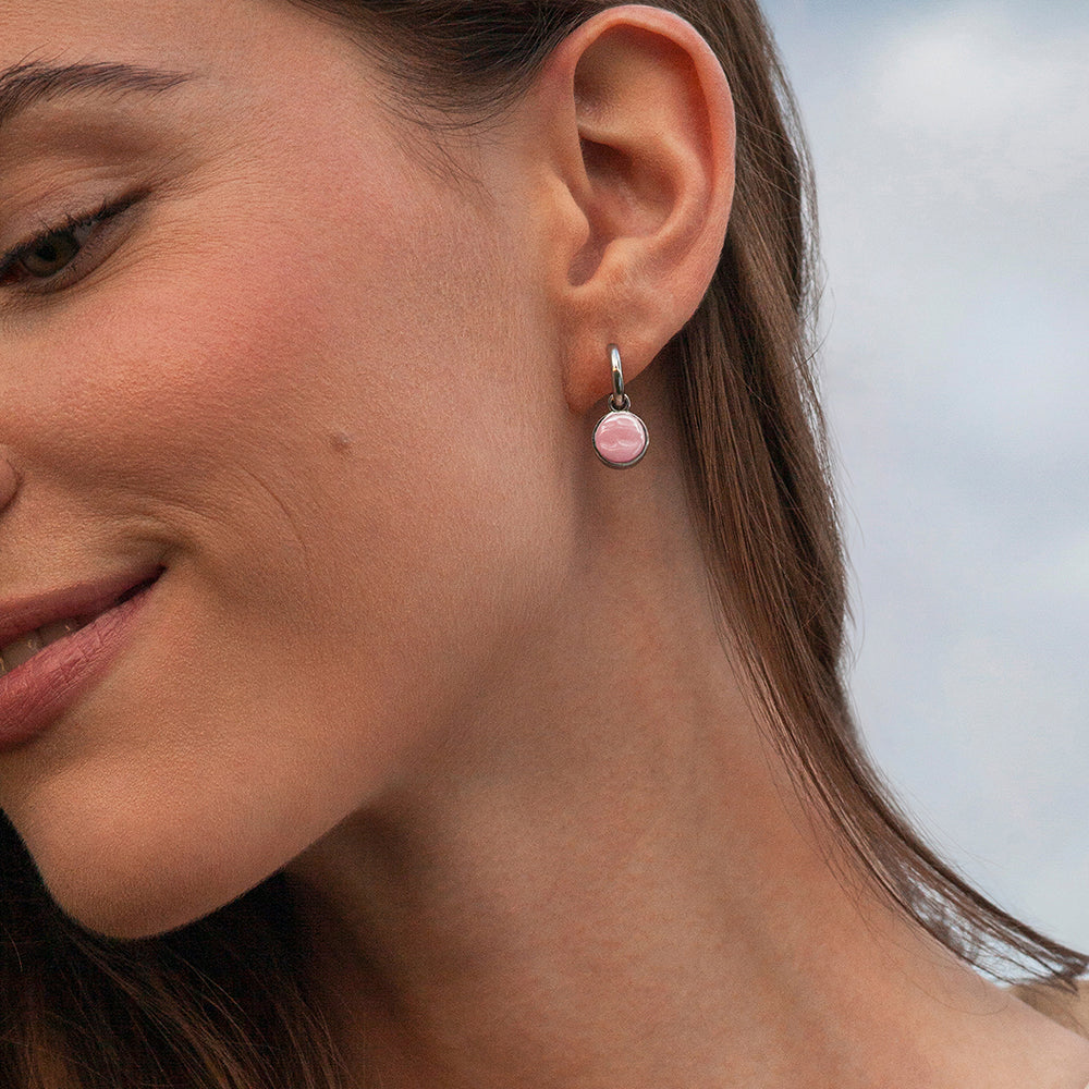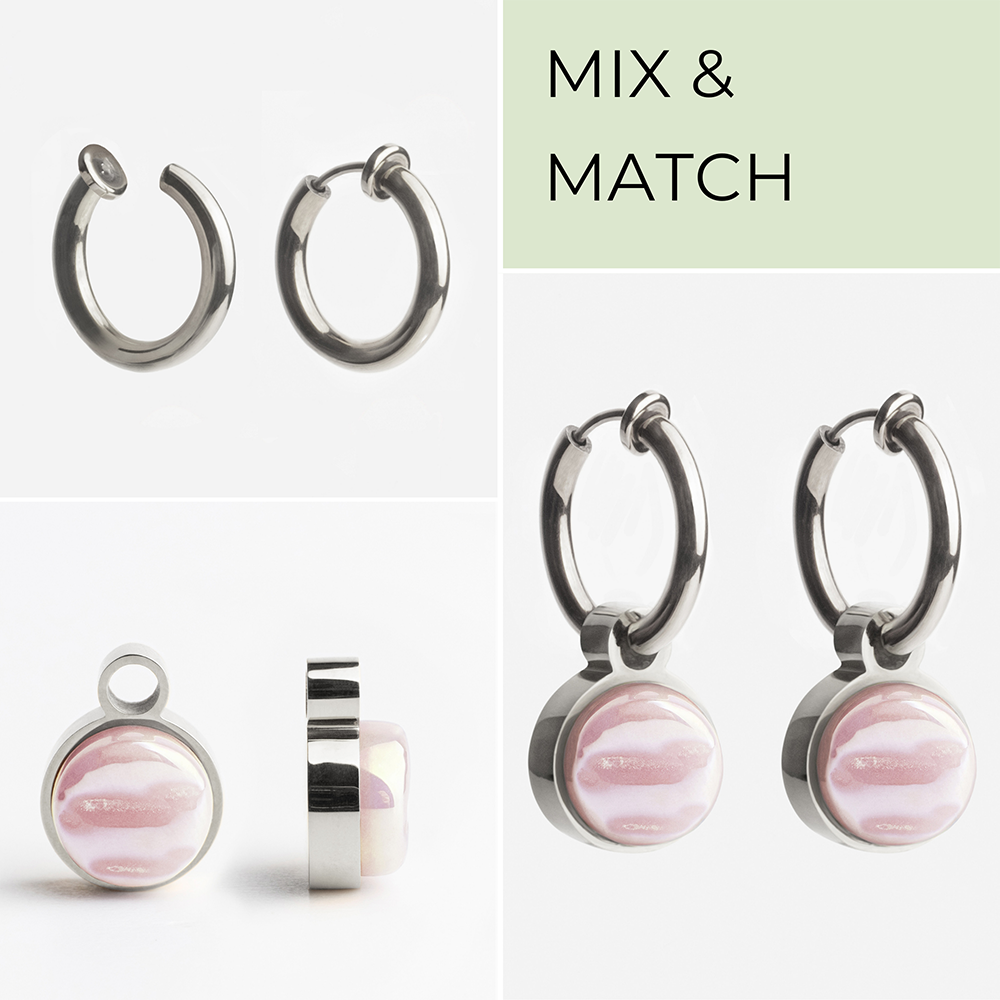 Die Clip Creolen aus hochwertigem Edelstahl sind in drei Metallfarben und 20 Steinfarben erhältlich. Die abnehmbaren Anhänger gleiten geschmeidig über die Clips und verleihen jedem Look eine individuelle Note. Der weiche Federverschluss sorgt für einen bequemen Sitz.