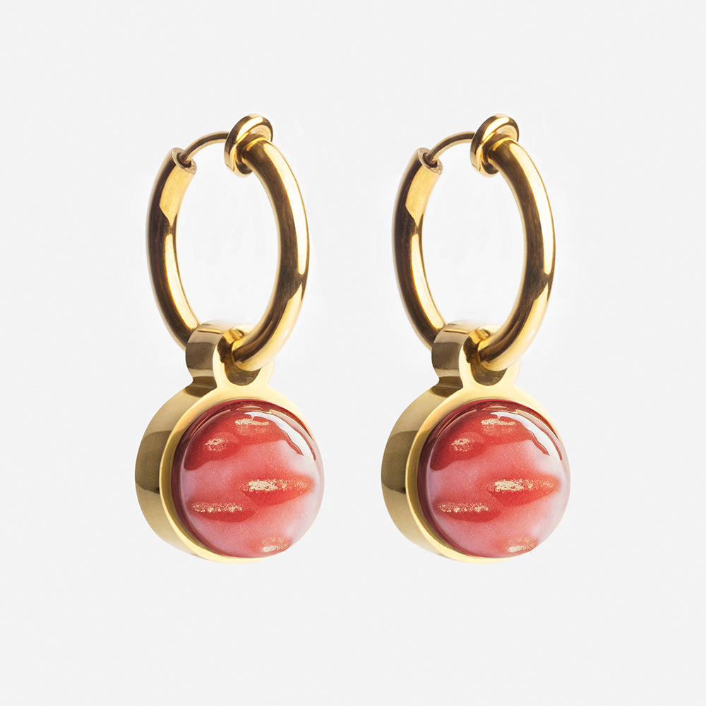 Die Clip Creolen aus hochwertigem Edelstahl sind in drei Metallfarben und 20 Steinfarben erhältlich. Die abnehmbaren Anhänger gleiten geschmeidig über die Clips und verleihen jedem Look eine individuelle Note. Der weiche Federverschluss sorgt für einen bequemen Sitz.