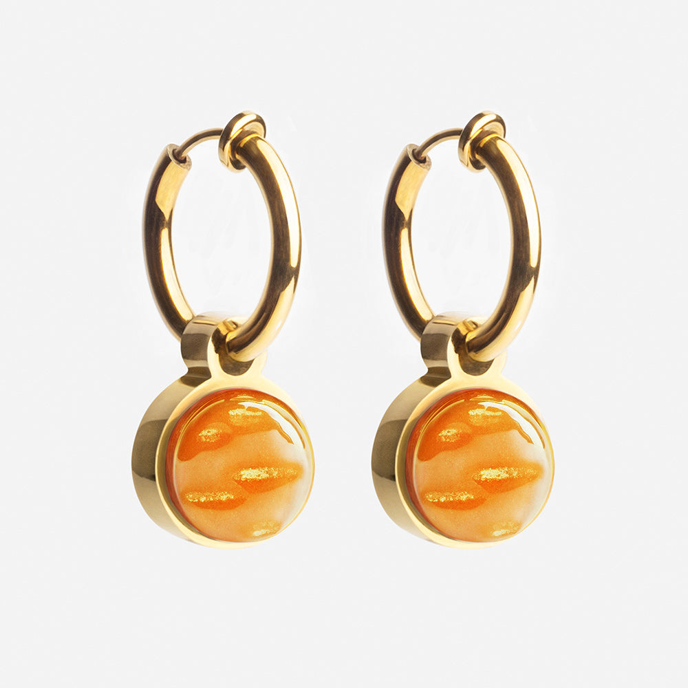 Die Clip Creolen aus hochwertigem Edelstahl sind in drei Metallfarben und 20 Steinfarben erhältlich. Die abnehmbaren Anhänger gleiten geschmeidig über die Clips und verleihen jedem Look eine individuelle Note. Der weiche Federverschluss sorgt für einen bequemen Sitz.