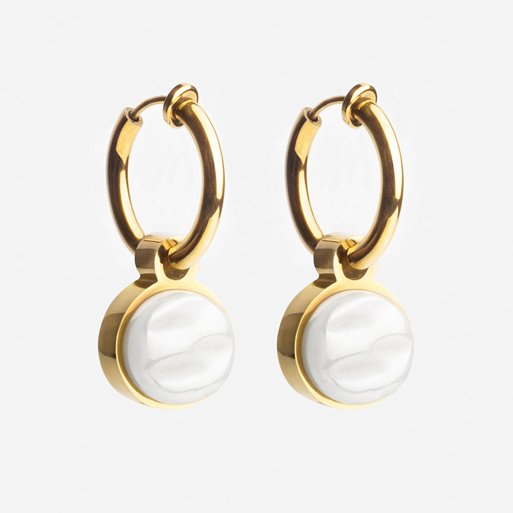 Clip-Ohrringe mit auswechselbarem Anhänger (Perlmutt weiß)