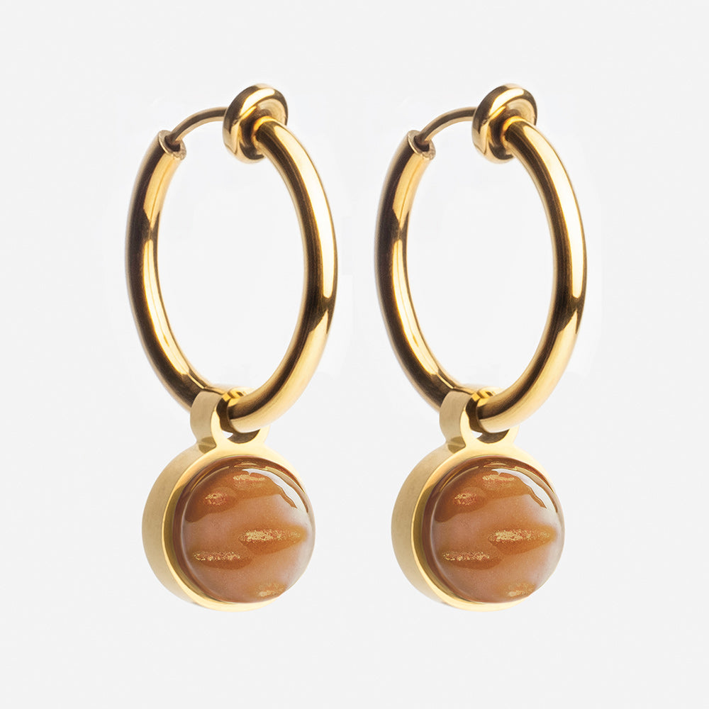 Ohrclip Creolen aus Edelstahl mit Charms zum Wechseln in 20 Farben. Perfekt für stilvolle Akzente am Ohr, auch ohne Ohrlöcher. Nachhaltig und bequem.