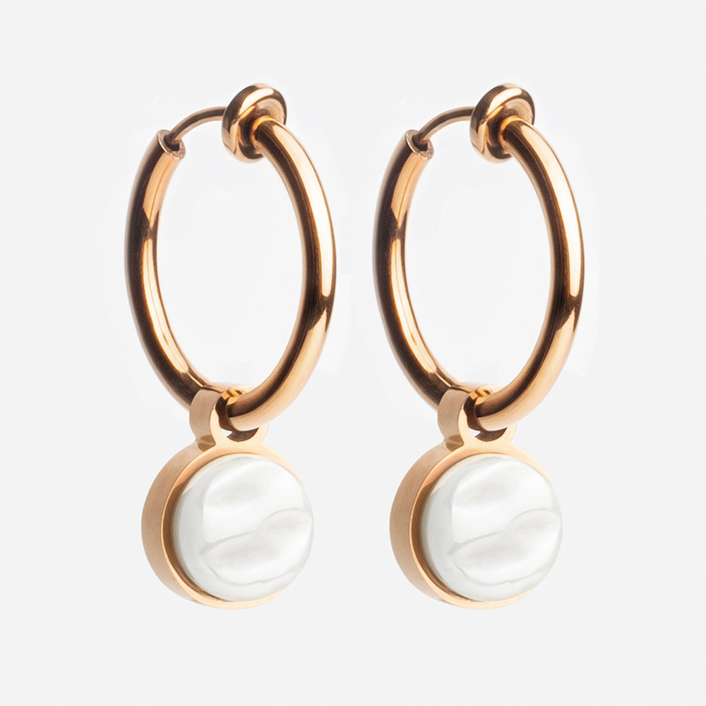 Clip-Ohrringe mit auswechselbarem Anhänger (Perlmutt weiß)