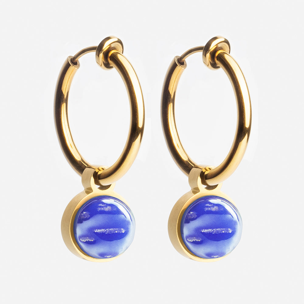Die Anhänger bestehen aus recyceltem Glas mit einer strahlenden Perlmuttbeschichtung, die den Charme von Halbedelsteinen versprüht, ohne dabei endliche Ressourcen zu verbrauchen. Die Ohrclips sind wasserabweisend und langlebig und werden auf nachhaltige Weise in Europa hergestellt. Ob mit oder ohne Ohrlöcher, mit den Clip Creolen setzt Du ein Statement für Stil und Nachhaltigkeit!