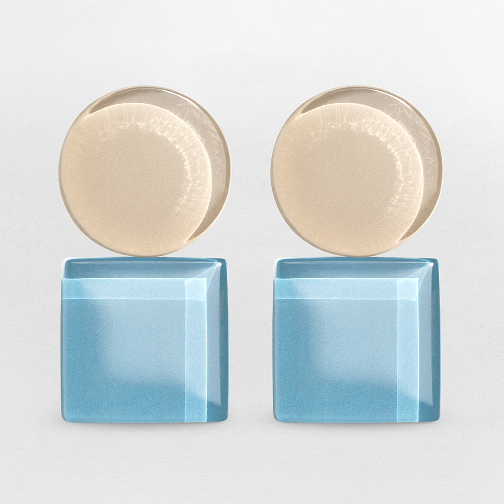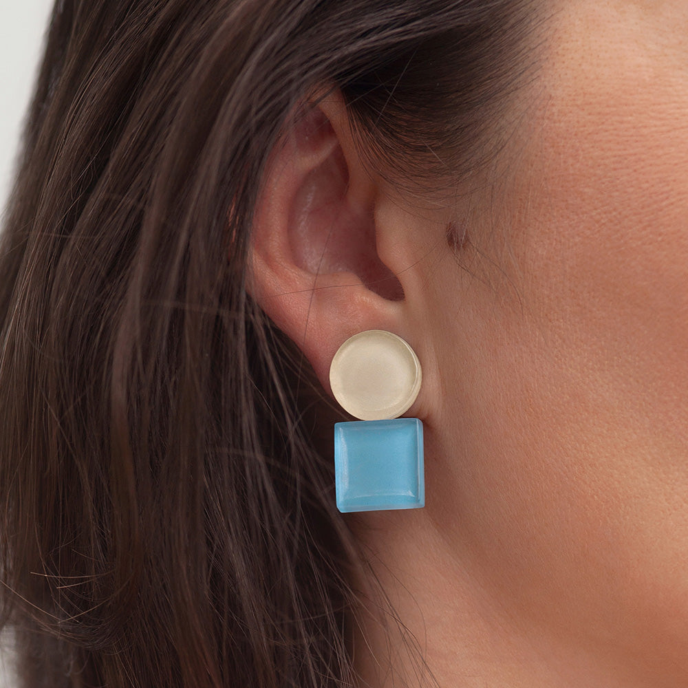 Gefertigt aus upcycelten Mosaikfliesen entsteht Ohrschmuck mit angenehmer Haptik: Die glatt geschliffene Glasoberfläche fühlt sich hochwertig an und bricht das Licht so, dass die Farbe im unteren Teil des Steins intensiv leuchtet. Ein faszinierendes Spiel aus Transparenz und Tiefe – für alle, die ein starkes Design-Statement lieben.