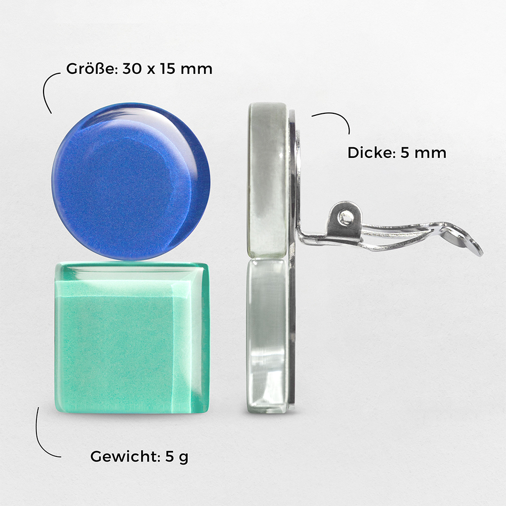 Du suchst Ohrschmuck ohne Stecker, der trotzdem ein Statement setzt? Unsere geometrischen Clip Ohrringe aus Glas verbinden klare Formen mit farblichem Ausdruck – ganz ohne Ohrlöcher. Die charakteristische Kombination aus rundem und eckigem Glaselement schafft einen spannungsvollen Look mit klarer Formensprache.