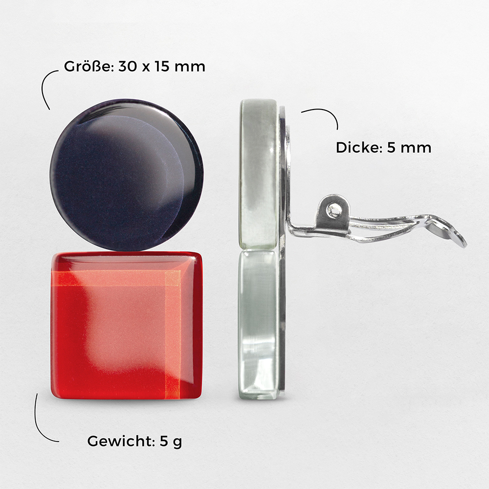 Du suchst Ohrschmuck ohne Stecker, der trotzdem ein Statement setzt? Unsere geometrischen Clip Ohrringe aus Glas verbinden klare Formen mit farblichem Ausdruck – ganz ohne Ohrlöcher. Die charakteristische Kombination aus rundem und eckigem Glaselement schafft einen spannungsvollen Look mit klarer Formensprache.