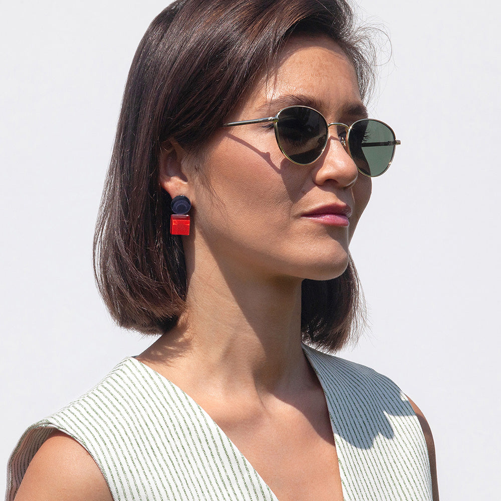 Gefertigt aus upcycelten Mosaikfliesen entsteht Ohrschmuck mit angenehmer Haptik: Die glatt geschliffene Glasoberfläche fühlt sich hochwertig an und bricht das Licht so, dass die Farbe im unteren Teil des Steins intensiv leuchtet. Ein faszinierendes Spiel aus Transparenz und Tiefe – für alle, die ein starkes Design-Statement lieben.