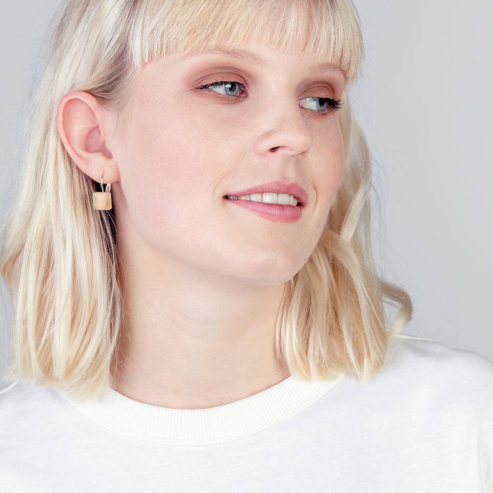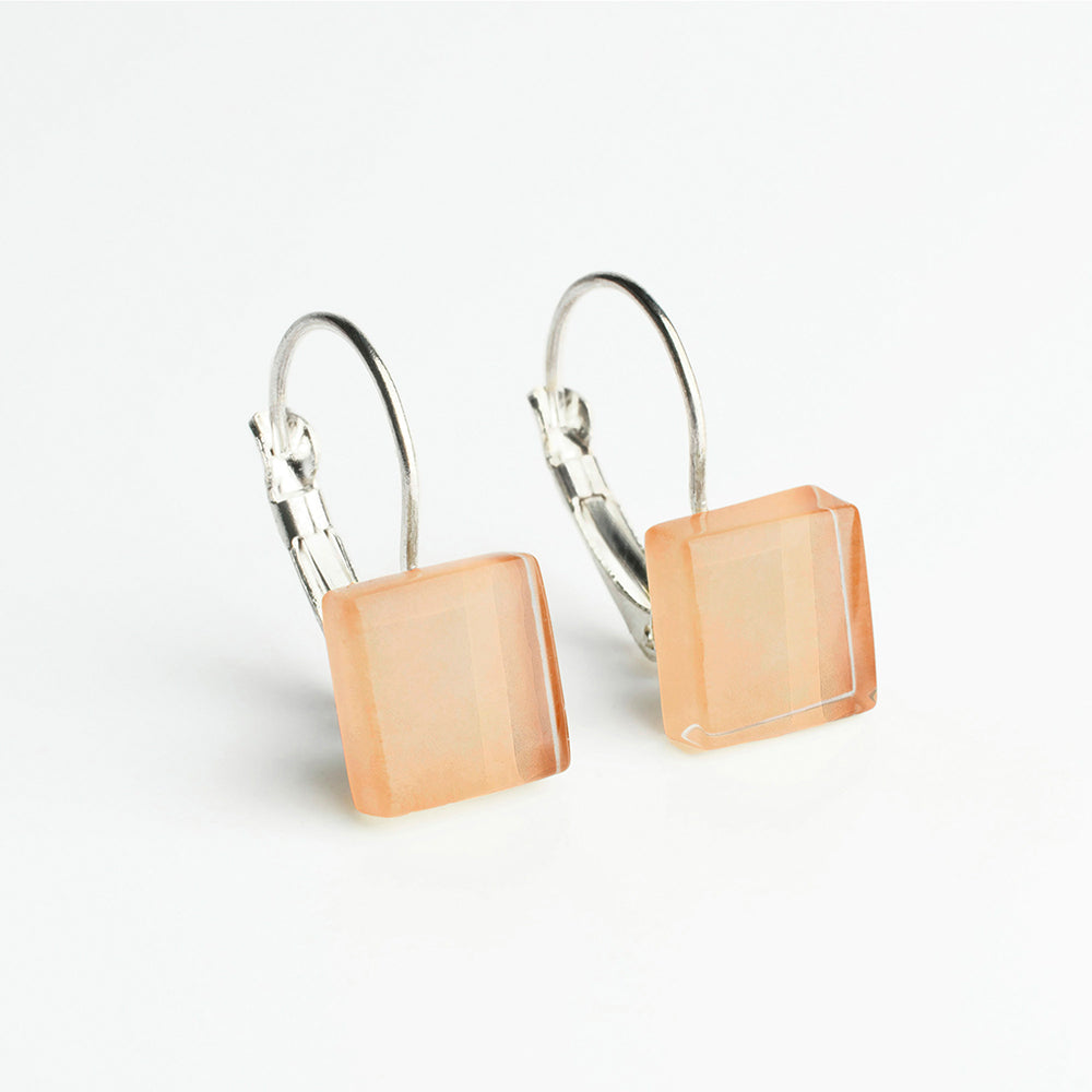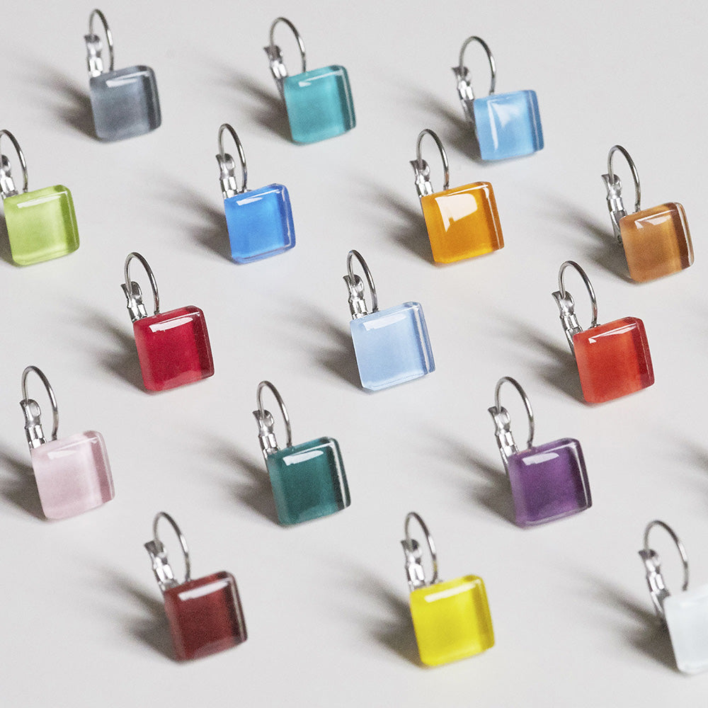 Hier kommen unsere geometrischen Ohrringe aus Glas. Sie sind mit kleinen Mosaiksteinen verziert, die von unten mit leuchtender Farbe beschichtet sind – so setzen die Ohrringe einen leichten, farbigen Akzent am Ohr. Der sichere Verschluss der Ohrhänger lässt sich einfach öffnen und schließen, geht beim Tragen aber nicht auf. Ein idealer Begeleiter für Deine Alltags-Abenteuer!