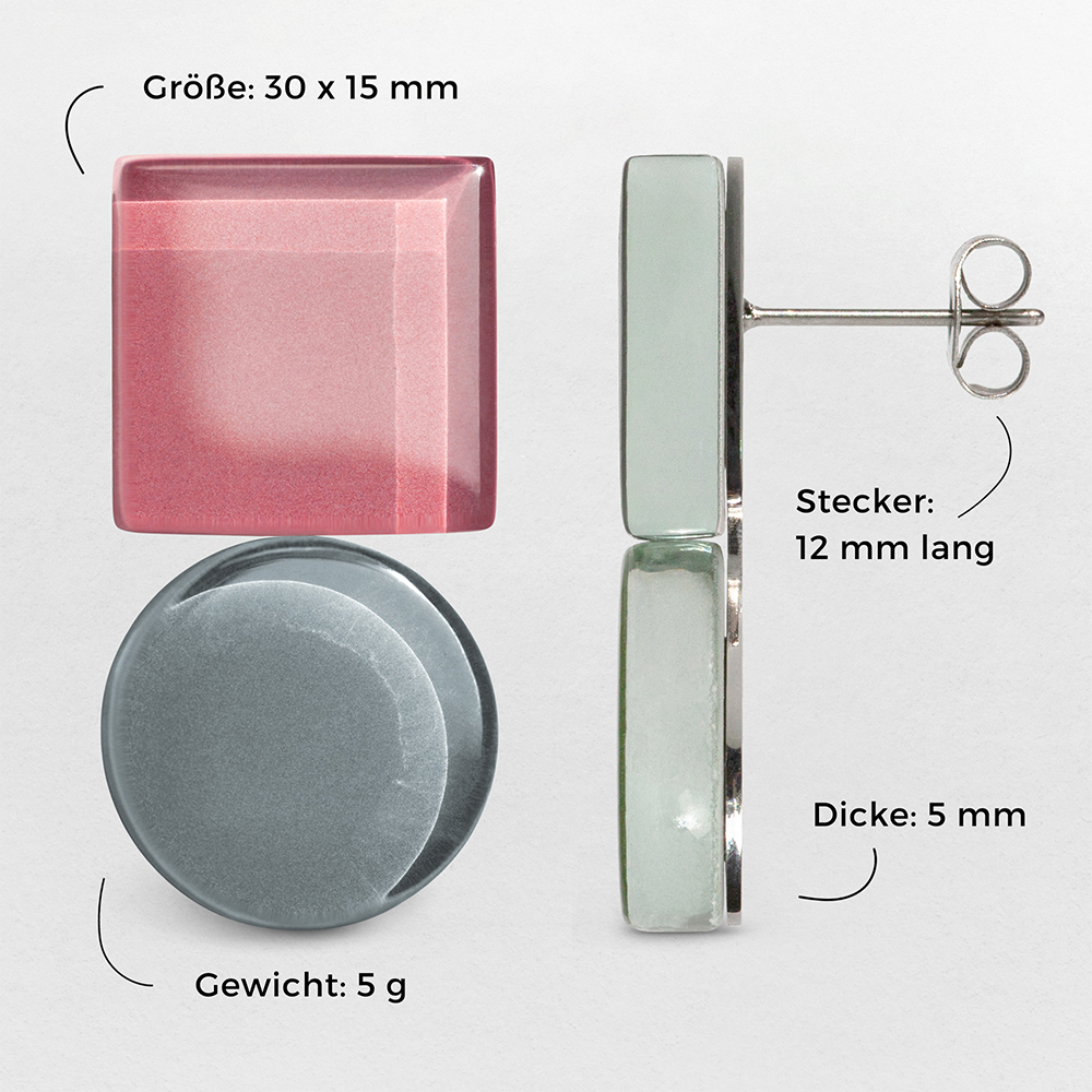 Die Bauhaus Ohrstecker haben eine Länge von 30mm und sitzen mit ihrer 15mm Breite perfekt am Ohrläppchen.