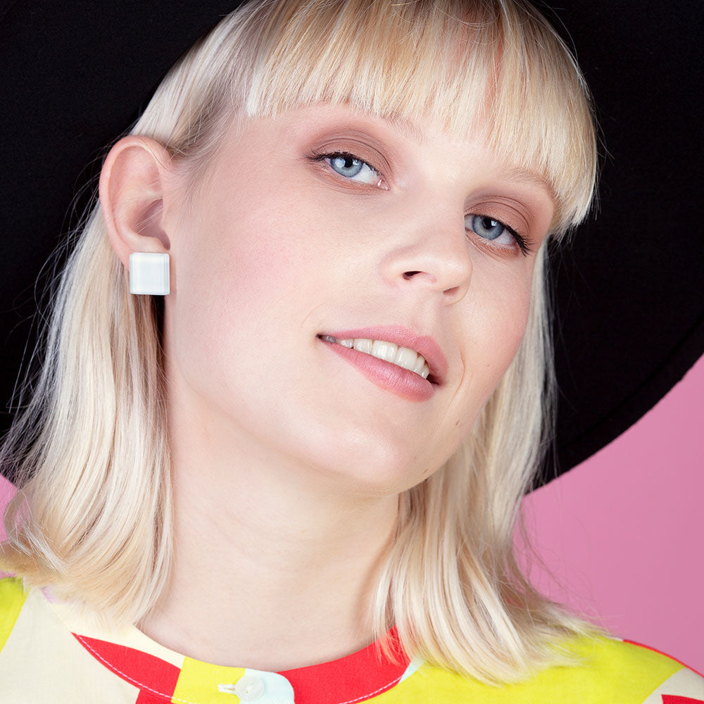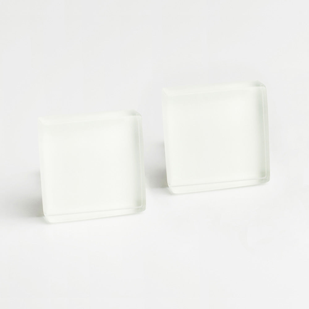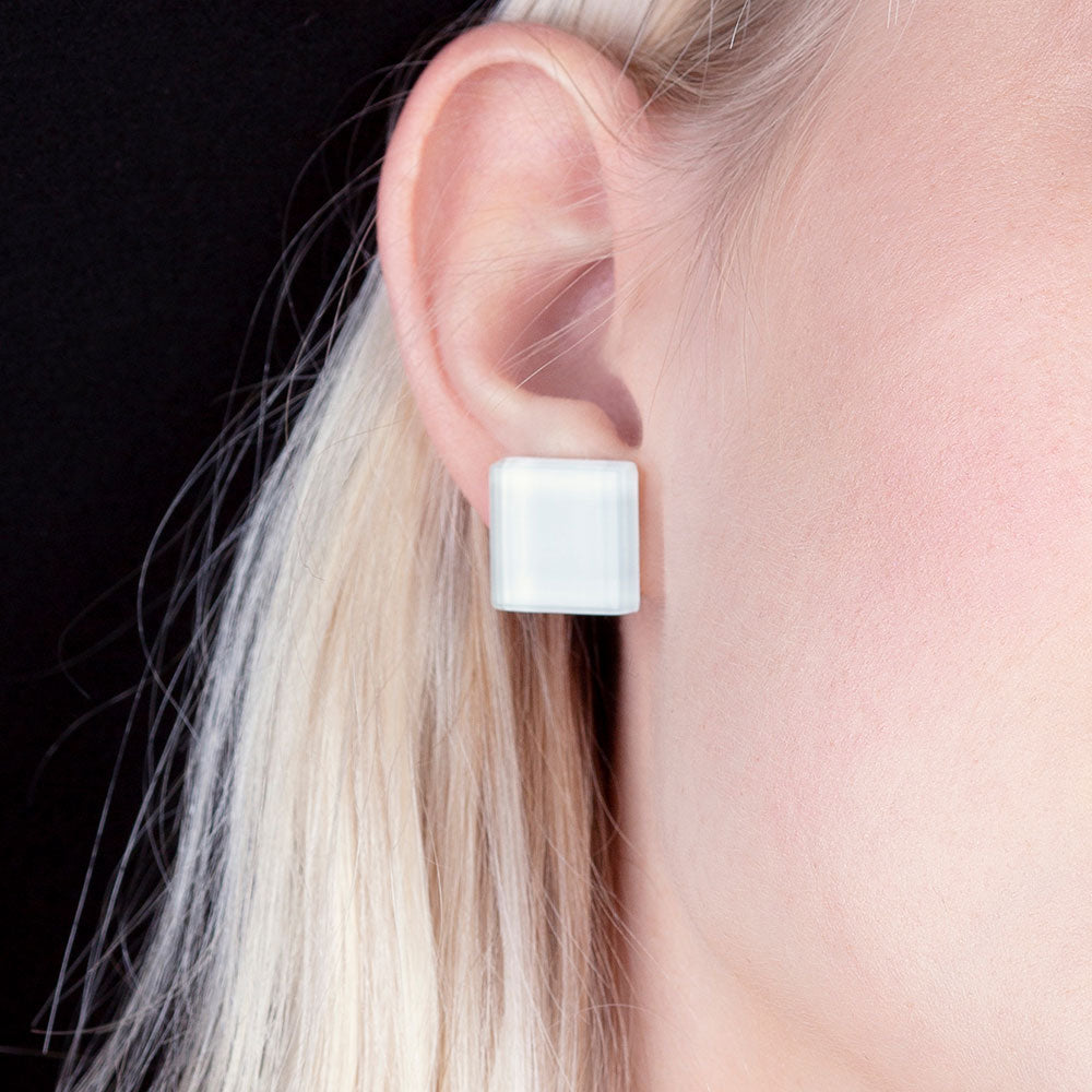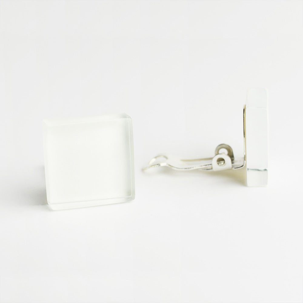 Quadratische Ohrclips aus Glas. Auch ohne Ohrlöcher tragbar! Die Ohrclips haben ein zeitloses Design und sind in verschiedenen Farben erhältlich.