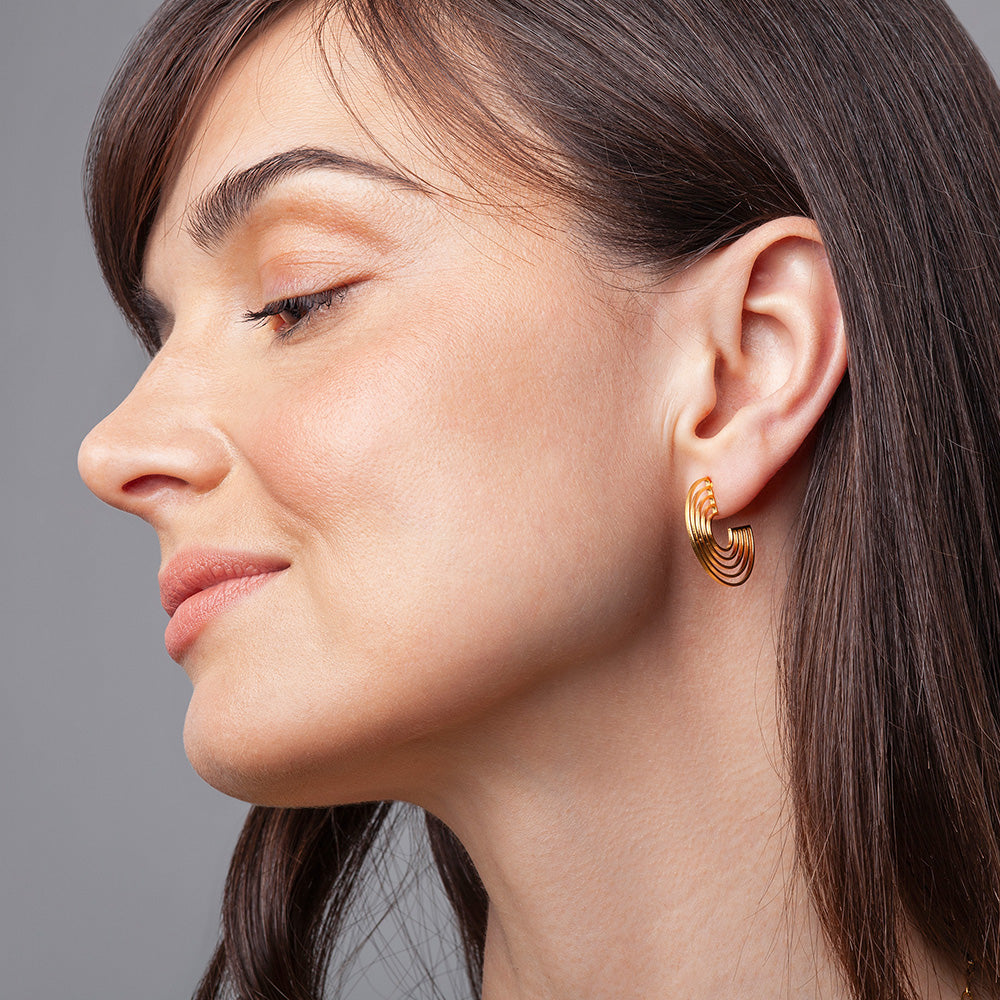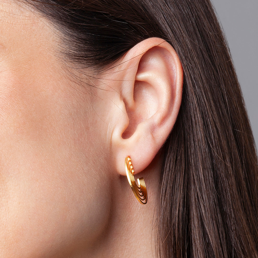 Die filigrane Form macht die Creolen Ohrringe extra leicht und der verwendete Edelstahl sorgt dafür, dass sie zu einem langlebigen Accessoire werden, selbst für Allergiker:innen.