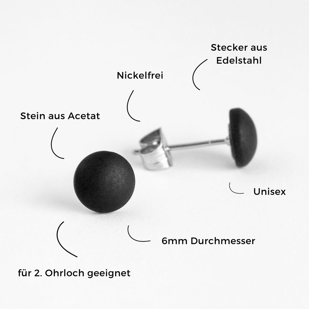 Schwarz geht immer – besonders, wenn es so minimalistisch daherkommt. Diese runden Ohrstecker mit leicht gewölbter, matter Oberfläche sind ein stilvolles Basic für jeden Tag. Sie setzen ein klares Statement ohne laut zu sein und lassen sich vielseitig kombinieren – ob im Büro, beim Stadtbummel oder zur Abendgarderobe.