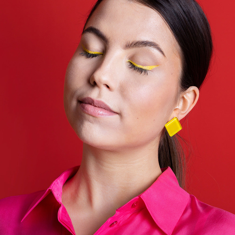 Unsere Statement Clip Ohrringe aus Glas können einfach mit einem kleinen Klappverschluss am Ohr befestigt werden. Durch den großen Mosaikstein sind sie echter Blickfang und runden jedes Outfit ab. Außerdem macht das Zusammenspiel der klaren Form und der ungewöhnlichen Größe diese Clips zu einem Must Have für jede stil- und umweltbewusste Träger:in!