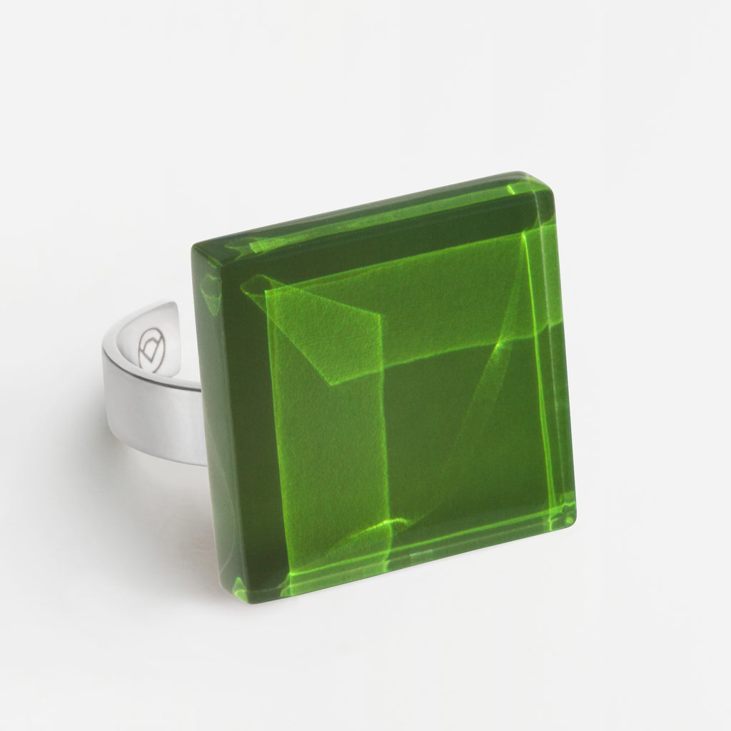 Verziert mit einem quadratischen Glasstein leuchtet der Statement Ring zu jedem Outfit und lässt auch Dich strahlen. Das transparente Glas ist von unten beschichtet, fängt jeden Lichteinfall auf und verwandelt ihn in eine spannende Farbexplosion.