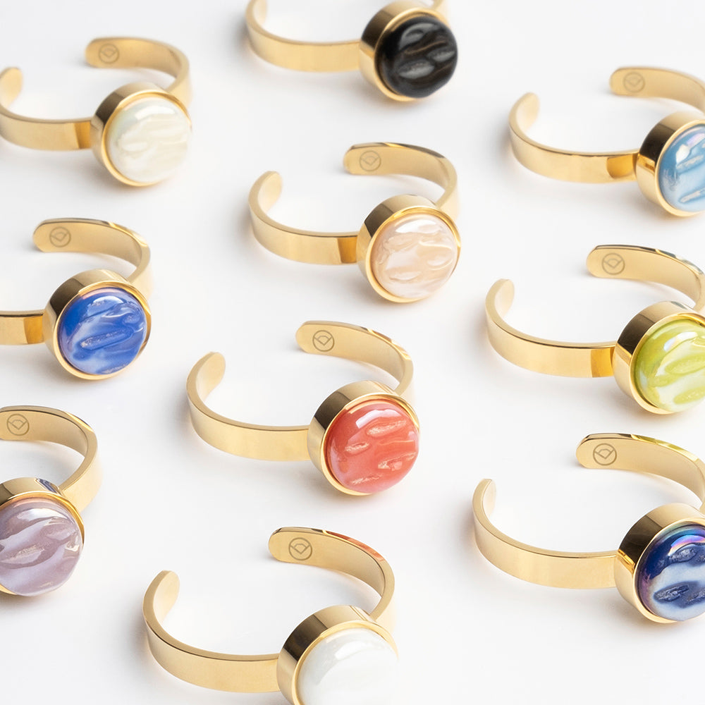 Mache Deinen Finger zum Blickfang und zeige mit unserem verstellbaren Ring, dass Dir die Umwelt am Herzen liegt! Drei Metallfarben (gold, silber und rosé) und 20 verschiedene Steintöne stehen zur Auswahl. Die Steine sind aus recyceltem Glas mit einer Perlmuttbeschichtung gefertigt und erstrahlen in Halbedelsteinoptik, ohne endliche Ressourcen zu beanspruchen.
